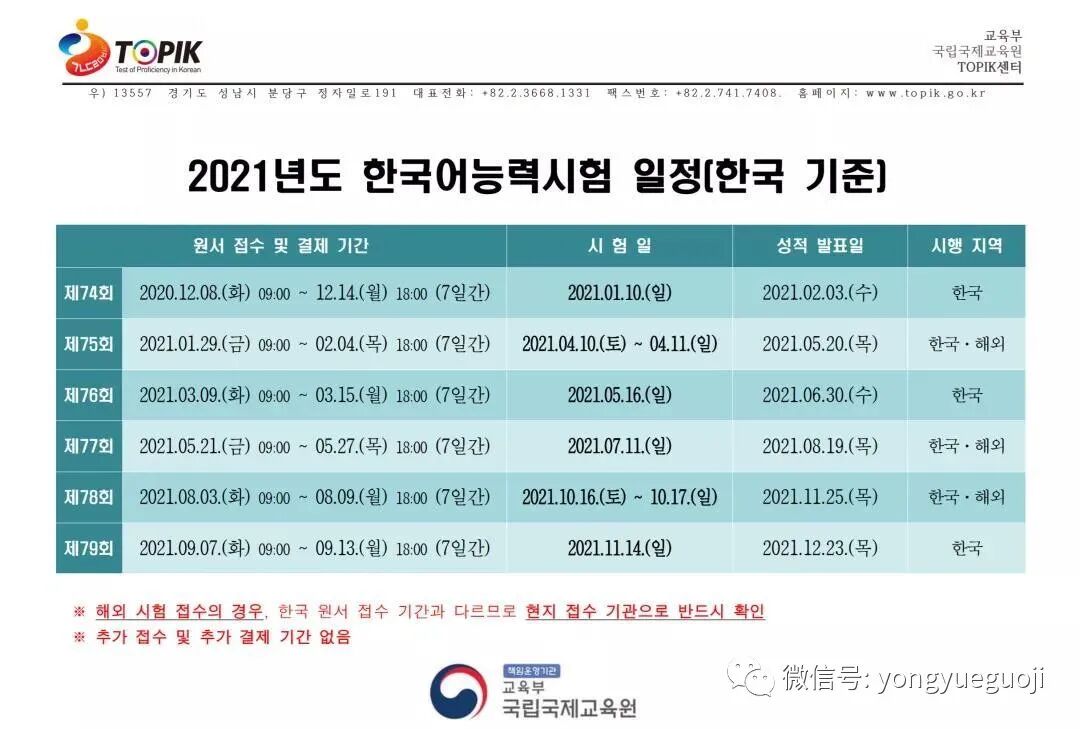 TOPIK官方公布2021年TOPIK考试日程,2021年一共有6次考试。
